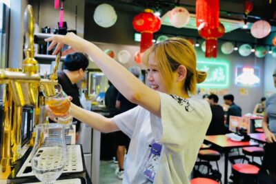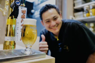 酔灯屋の生ビールマイスター竹内社長から
